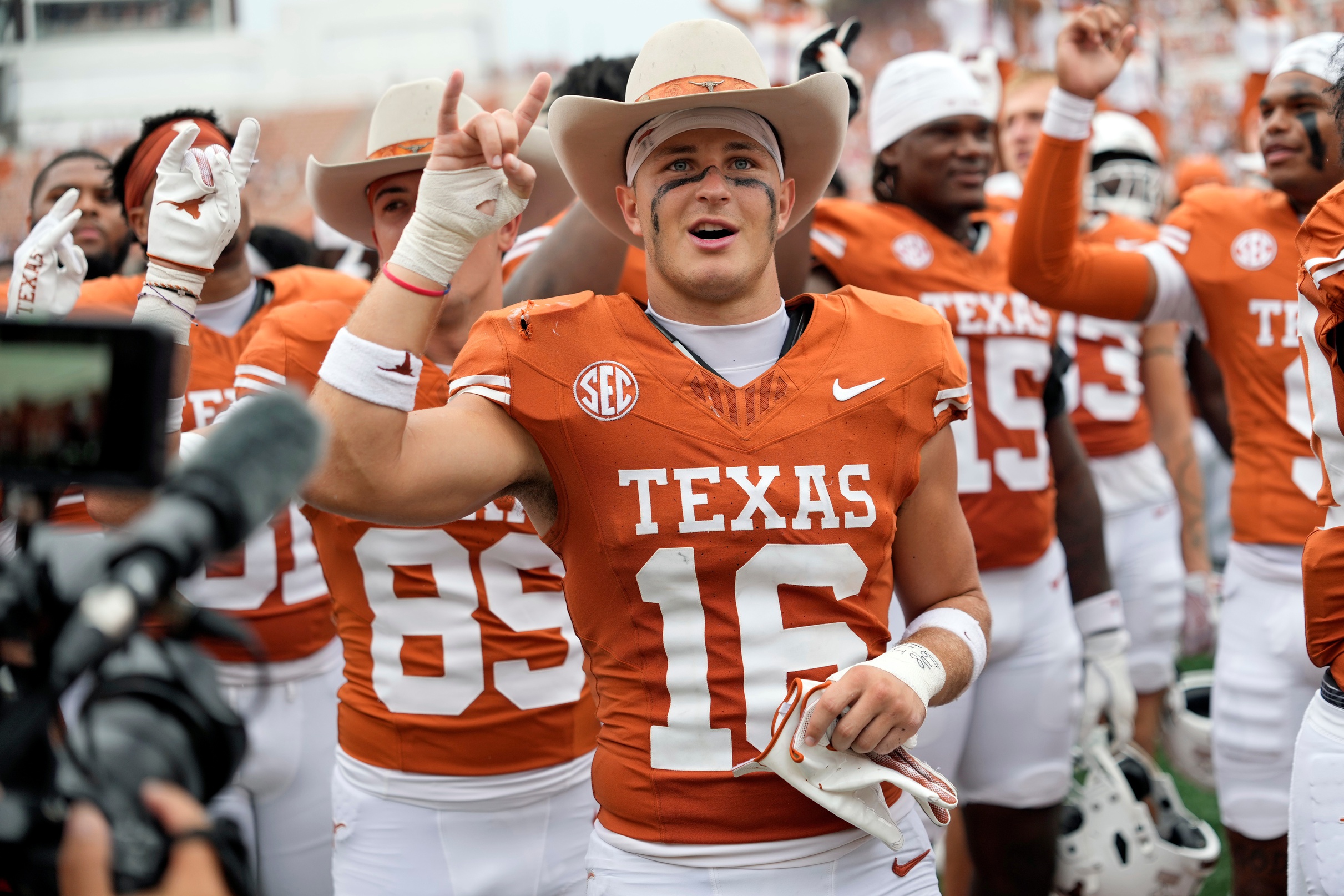 After a turnover on downs on their first drive, the Longhorns took advantage of solid field position with a touchdown on their next offensive drive. The first score came with 5:26 remaining in the first quarter with a Arch Manning 2-yard touchdown rush.