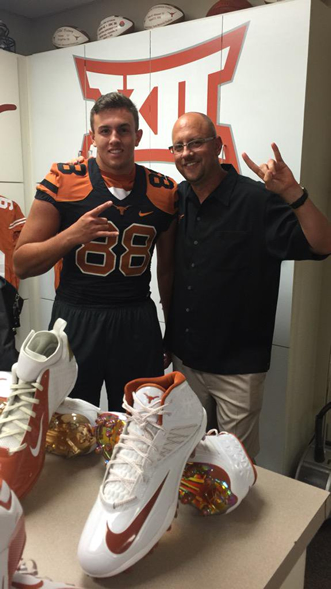 Peyton Aucoin committed over the telephone to the University of Texas on July 24, 2015, on his way home after a visit to UT with head coach Charlie Strong.