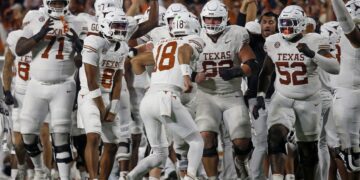 After leading his team to an electric fourth quarter comeback against Mississippi State on Saturday night, Texas quarterback Arch Manning left the game in overtime after sustaining a hit to the back of the helmet. Reports subsequently indicated that Manning sustained a concussion, which was supported by head coach Steve Sarkisian’s comments at Monday’s Vanderbilt … Continue reading With Arch Manning in concussion protocol, Caldwell begins week taking reps with starters